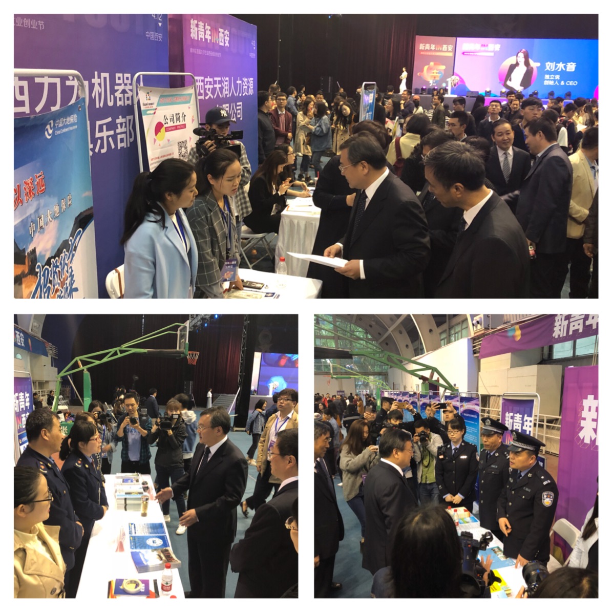 4月12日下午,“新青年IN西安”--碑林区首届大学生留西安就业创业节在我校雁塔校区文体馆成功举办。此次就业创业节是碑林区政府联合我校共同落实西安市人才强市、就业优先战略的一项重要活动,旨在面向大学生宣传碑林区经济社会发展情况和就业创业政策,吸引更多毕业生关注碑林,最终选择留在碑林,实现良好就业,助力“大西安”建设发展。西安市人民政府副市长、碑林区委书记董劲威、陕西省人力资源和社会保障厅副巡视员、就业服务局局长张延成、西安市委组织部副部长、市人力资源和社会保障局党组书记、局长李宁君、碑林区委副书记邢宏锋,碑林区委常委、常务副区长王宏联、校党委书记苏三庆、校长刘晓君、校党委副书记马川鑫等领导同志出席此次活动。
