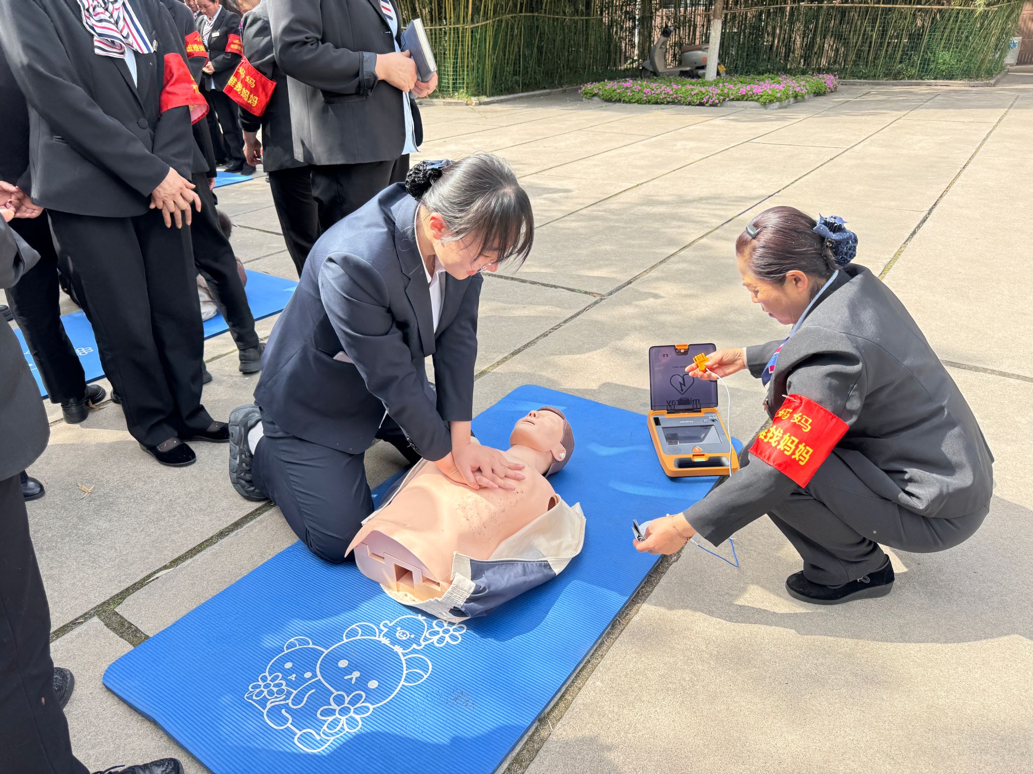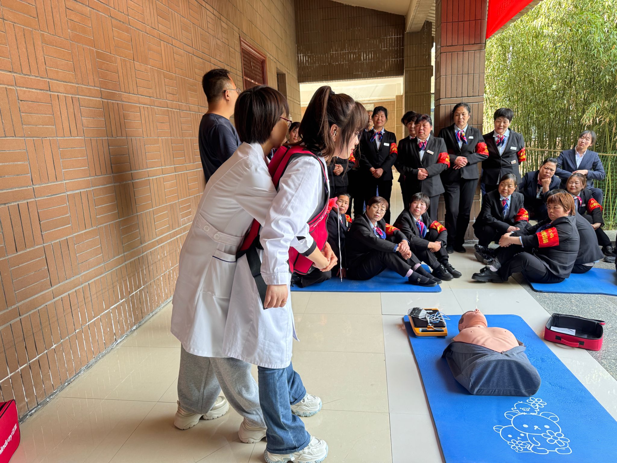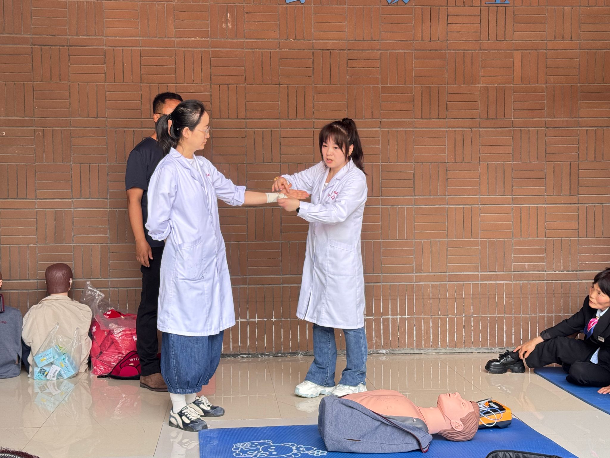 实操教学环节是本次培训的重点。培训医师结合公寓应急处置实际,现场逐一演示了心肺复苏(CPR)操作流程、自动体外除颤器(AED)使用步骤、海姆立克急救法以及三角巾绞棒包扎止血法等关键急救技能,细致讲解各项操作的动作要领、注意事项与常见误区,确保参训人员精准把握操作标准。演示完毕后,参训人员分组开展实操演练,医师团队全程一对一现场指导,针对按压位置、按压深度、通气频率、AED电极片粘贴、异物冲击手法等关键细节逐一纠正,引导参训人员反复练习、熟练运用,切实提升全体学员规范、高效的应急施救能力。
