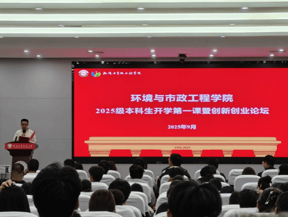 “与优秀者同行,与奋斗者共进”“深耕行业不仅是态度,更是智慧”“打造自己的终身核心就业力”“铁饭碗是具备随时起飞的能力”9月22日下午,2025级本科生开学第一课暨创新创业论坛在学府城6-301顺利召开。北控水务集团北水教育中心总经理、全国生态环保行业产教融合共同体秘书长、北控水务(现代)产业学院院长冀广鹏,为环境学院2025级新生们讲授了题为环保行业发展与职业生涯规划的开学第一课。他围绕环保行业趋势、人才成长路径及个人发展建议展开深度分享,娓娓引导同学们应如何度过人生最重要的大学时光。