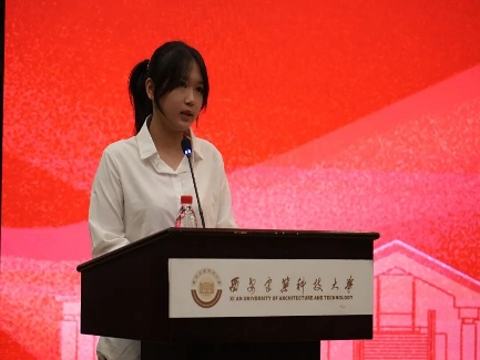 在校生代表建筑2104班张诗艺同学结合自身学习与实践经历,分享在建院成长的收获与感悟,鼓励新生不畏困难、勇于尝试,以踏实奋斗书写无悔青春。