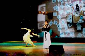第三个板块:“熠彩鎏‘金’,追逐‘新’章”。朗诵《时代新声》描绘了一个多姿多彩的青春和崛起新时代。回望冶金工程学院的历程,我们步履铿锵;展望未来,冶金工程学院正向着新时代高歌猛进,乘风破浪;回味经典,一曲《美丽的神话》带我们欣赏了坚定不渝的传奇爱恋;第二相声社别开生面,以相声形式,打趣考试作弊、说谎吹牛等恶劣现象,引人发笑的同时又发人深思;一等奖得主建环1703班王璇携古典舞《霓裳梦》重返舞台,如竹篱上飞舞的蝴蝶,扇动着串串音符。