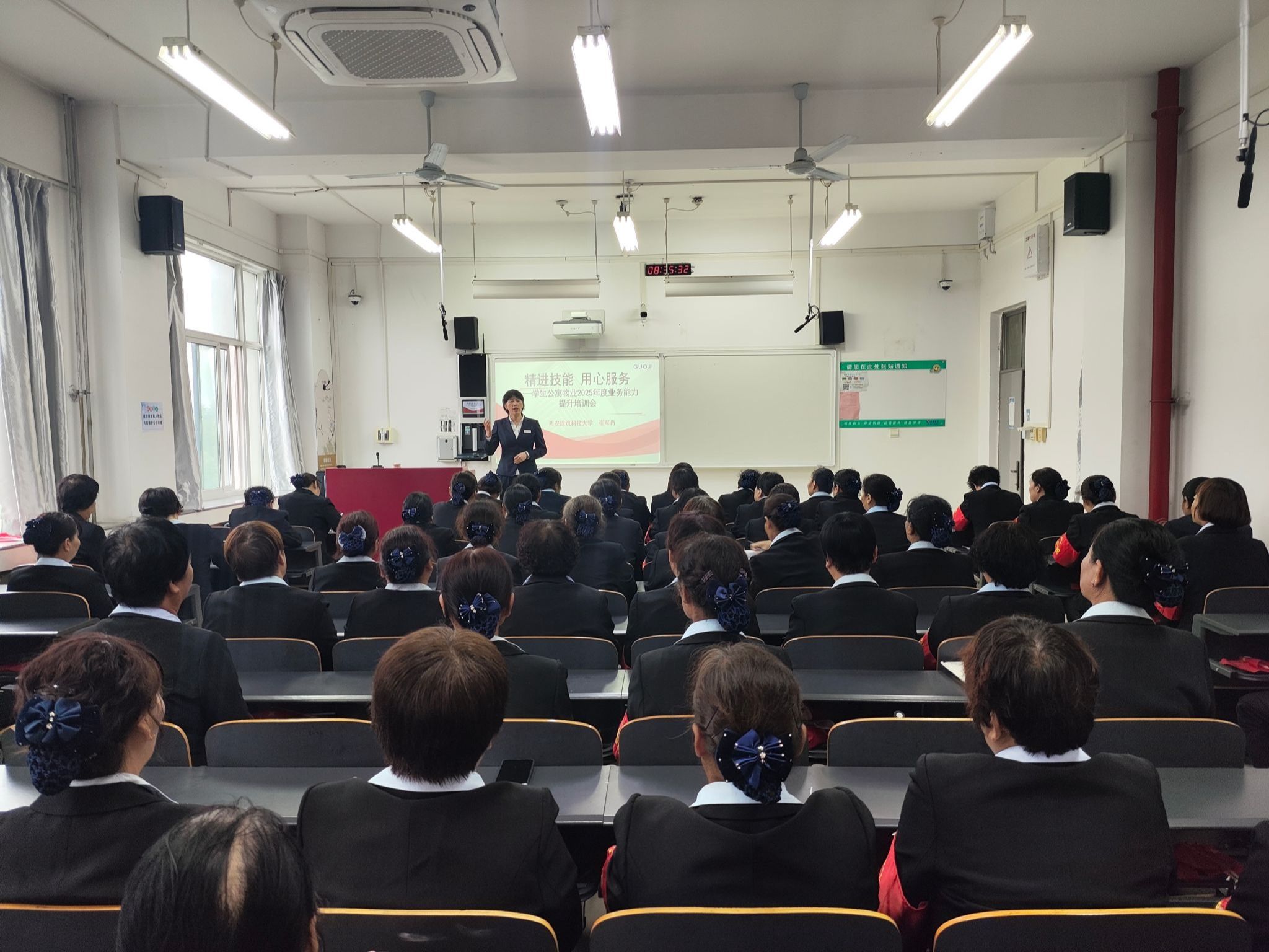 学生公寓是学生在校的“第二个家”,员工服务质量关乎学生居住体验与校园和谐,优质的物业服务不仅能让学生感受到温暖,也有助于增强他们对学校的归属感。此次系统培训切实提升了员工的业务水平,为打造专业、高效、有温度的宿舍管理队伍奠定了基础,也是学校落实“三全育人”理念的重要实践。